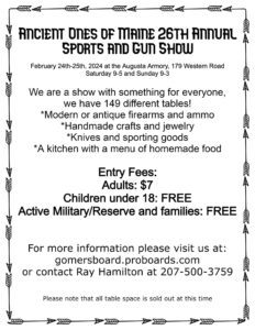 Ancient Ones Show- Augusta Armory Saturday 9-5 and Sunday 9-3 - see flyer below N/A February 24, 2024 – February 25, 2024 Stop by to visit the club table. {title} View full calendar